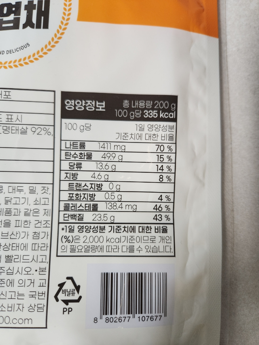 보통 시판되는 저렴한 명엽채나 어묵류는 전분(밀가루) 함량이 높은 경우가 많아요.